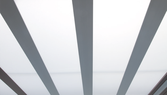 縦と横に走る構造材によって構成されていたカーポートルーフを、