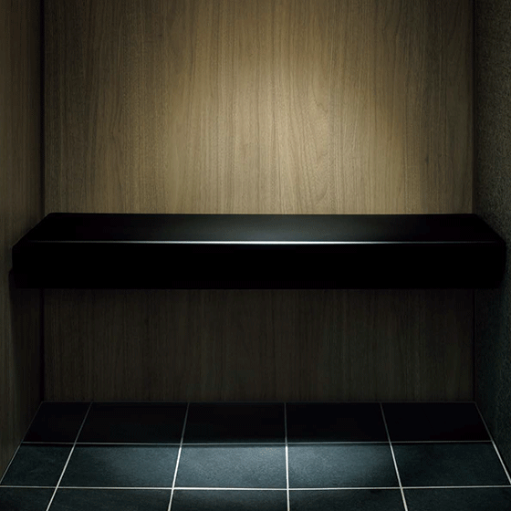浴びたシャワーの水は背面のスリットから排出され、快適にすごすことができます。
