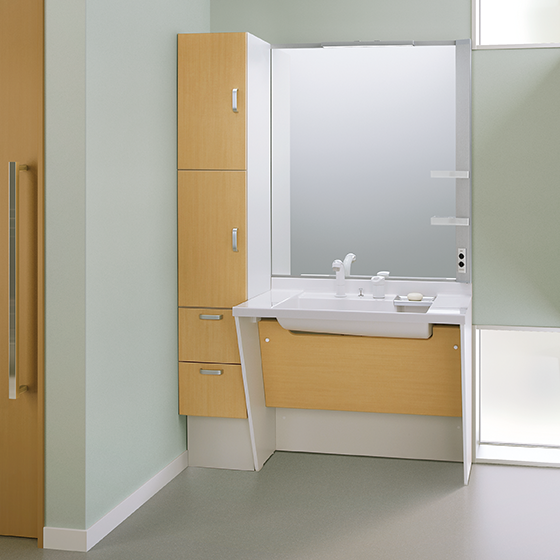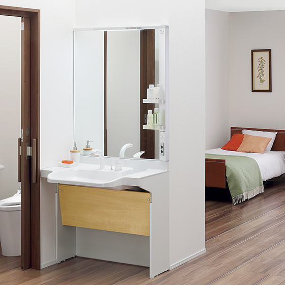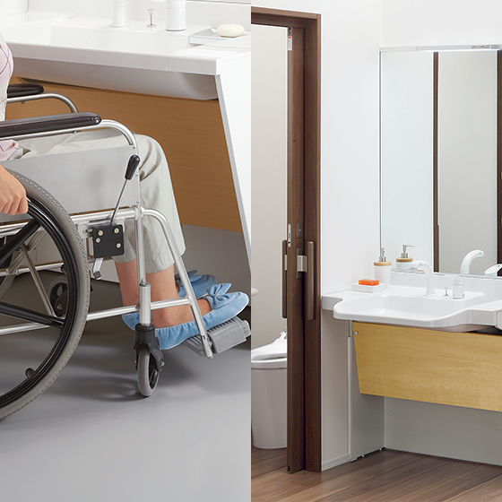 ゆったり、ワイドに使えるカウンター。暮らしを支える車椅子対応洗面化粧台です。
