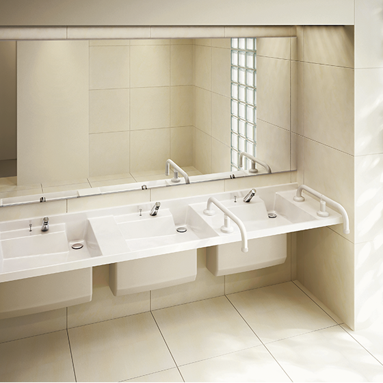 洗面器を最大3連まで選べる洗面カウンター。福祉施設の共用スペースや公共施設におすすめです。