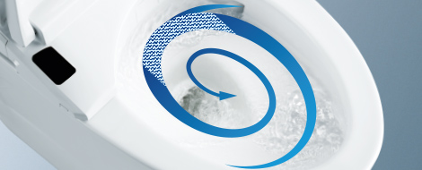 渦を巻くようなトルネード洗浄が、少ない水で、汚れをしっかり洗い流します。
