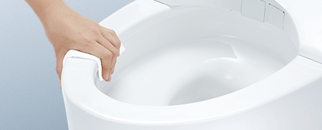 汚れが見えにくく、たまりやすいフチ裏をなくした便器形状。お掃除はサッとひとふきで完了です。
