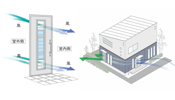 採風タイプならドアを閉めたままで空気の入れ換えもスムーズ。