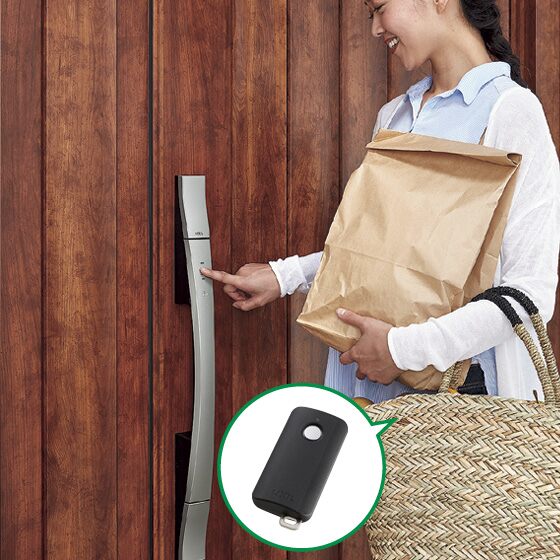 帰宅時も、外出時も、ボタンをタッチするだけ。オートロックの設定にもできるので、鍵の閉め忘れも安心です。